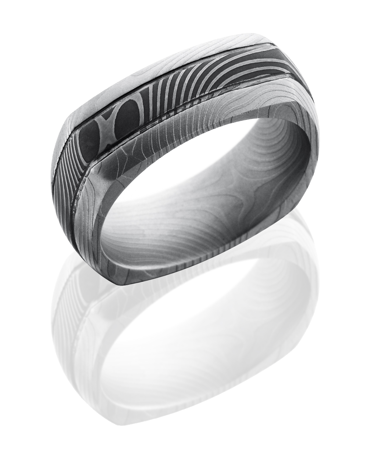 Damascus Steel 8mm Domed EuroSquare Band with Two .5mm Grooves in Flat Twist Pattern